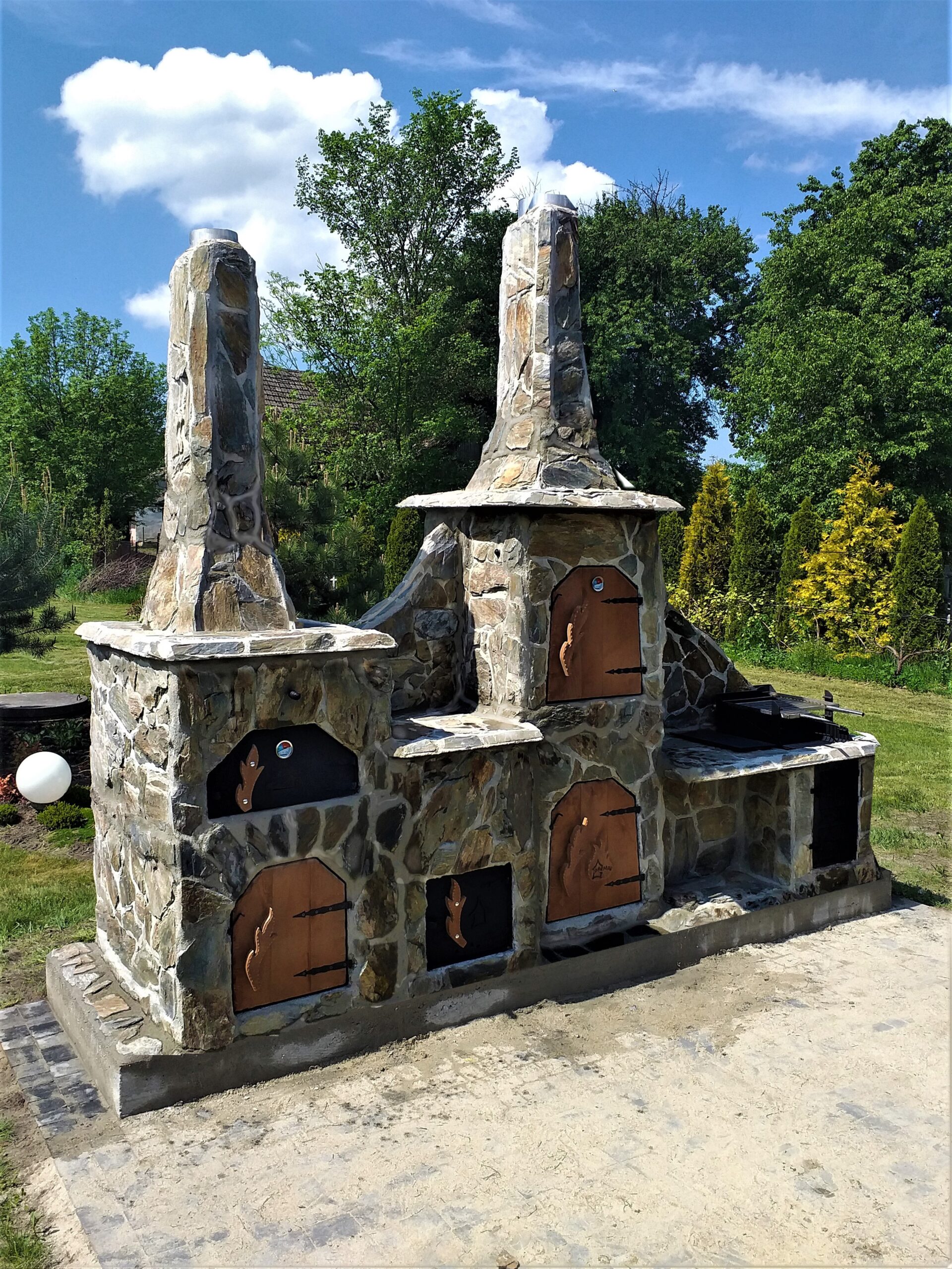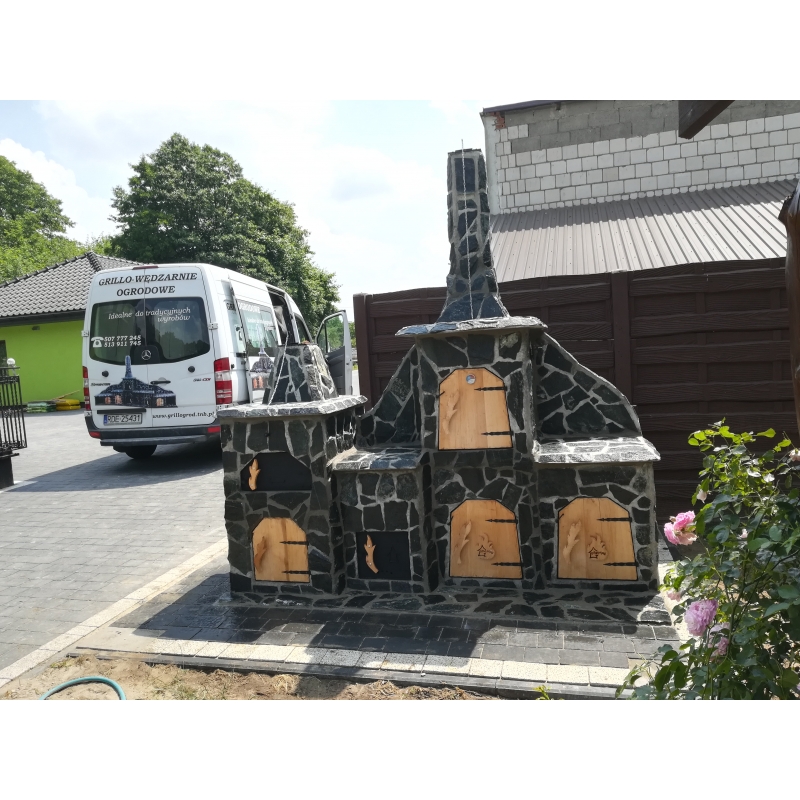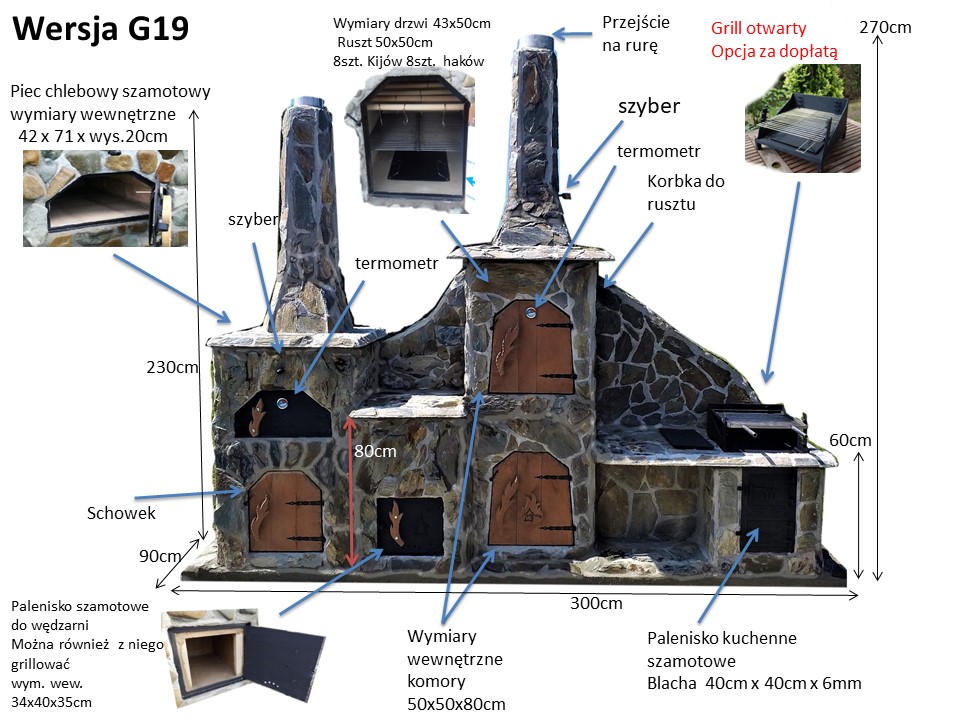 Grill Wędzarnia G19 zawiera piec chlebowy z osobnym kominem, oraz zamykany schowek.