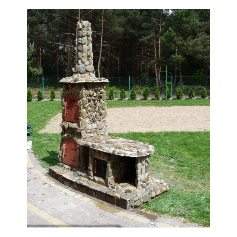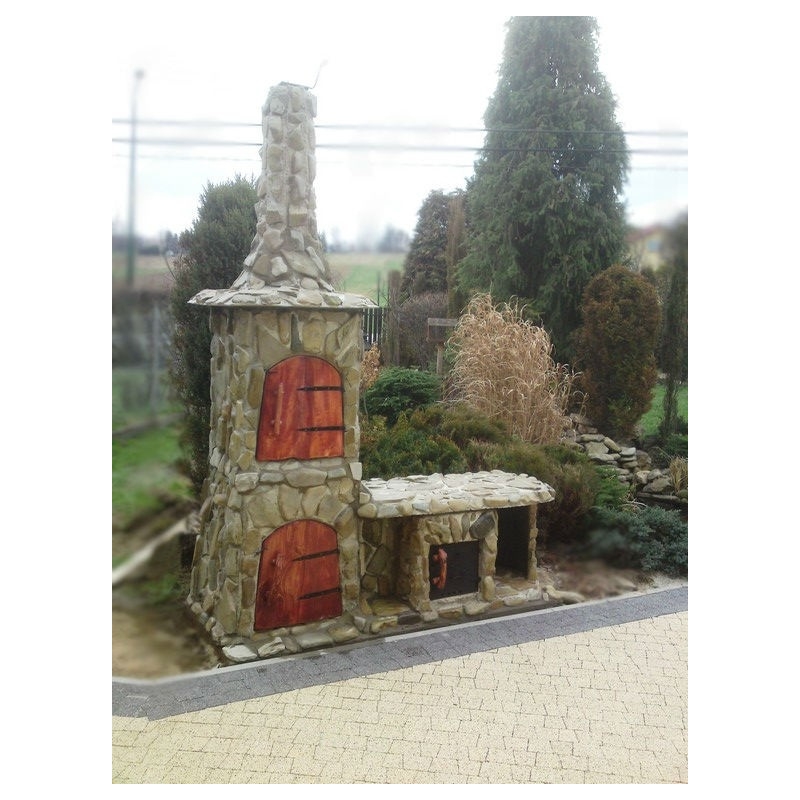 Jest wykonana z betonu zbrojonego i kamienia naturalnego. Palenisko do wędzarni jest wymurowane cegłą szamotową. Z niego poprowadzony jest kanał do dolnej komory wędzarni. Następnie dym trafia do górnej części gdzie jest rozbijany na boki i tam odbywa się wędzenie.