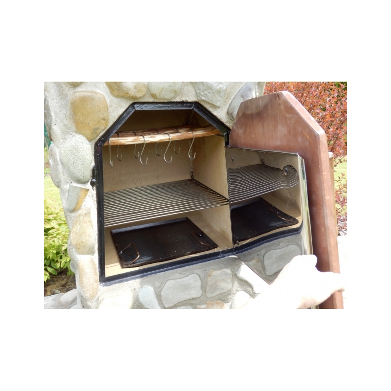 -Przy wędzeniu można uchylić dolne drzwi wtedy miesza się powietrze ciepłe z zimnym i obniża znacznie temperaturę wędzenia