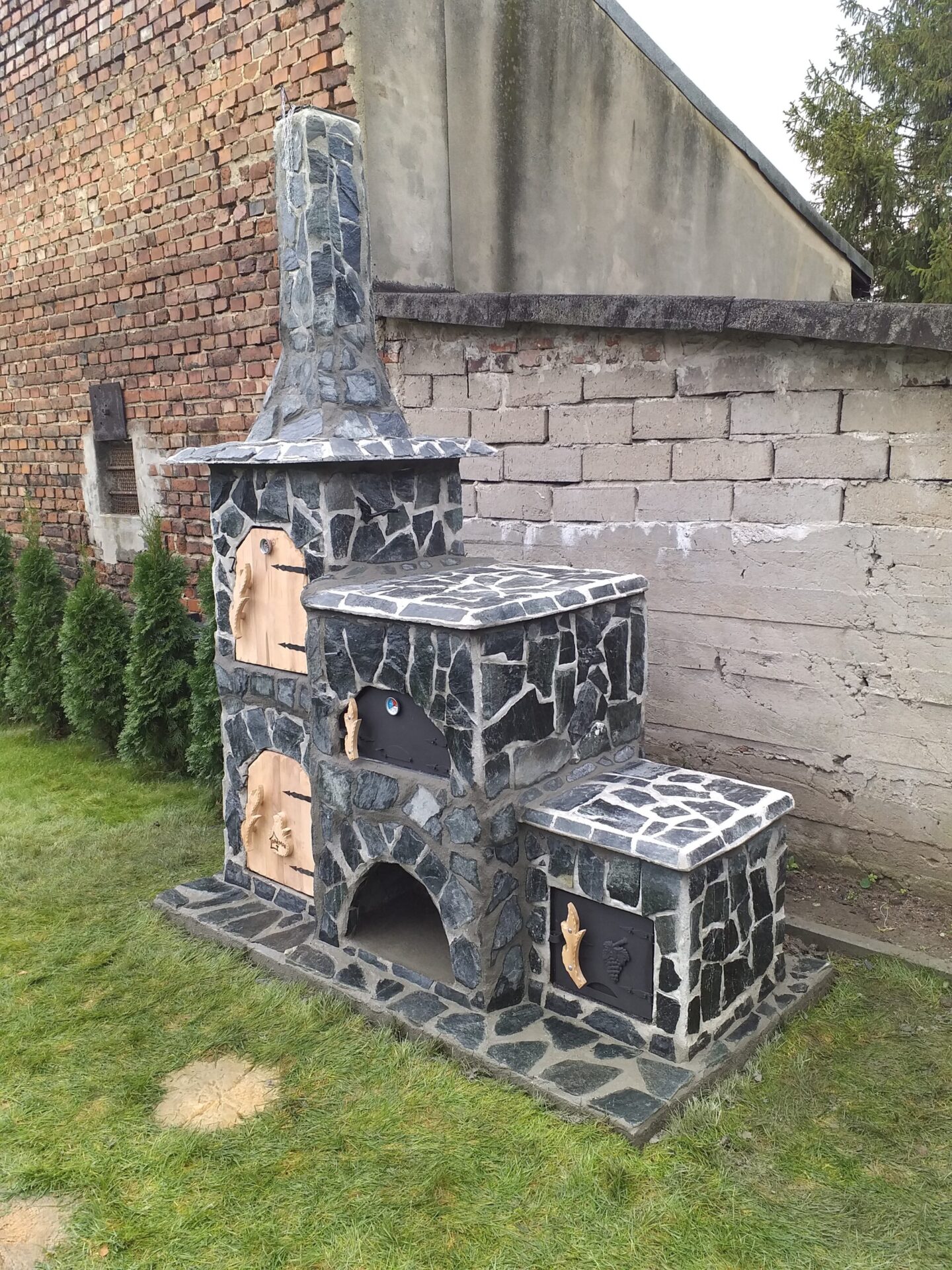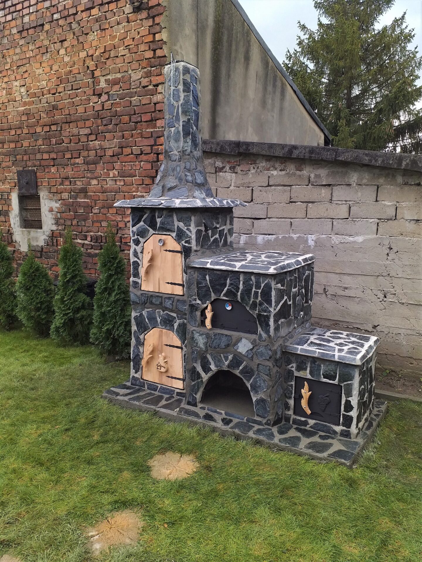 5. Drzwi drewniane 2szt 6. Palenisko wędzarni i piec chlebowy, drzwi metalowe Kolor drzwi czarny